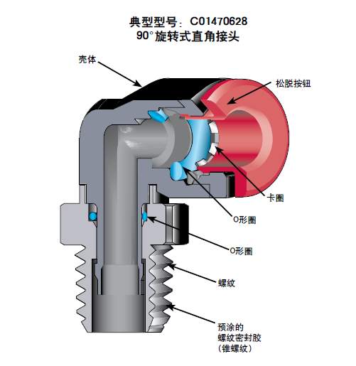 直螺紋上凹下去的固定O形圈可提供