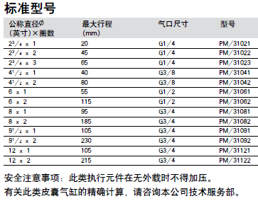 安全注意事項:此類執(zhí)行元件在無外載時不得加壓。